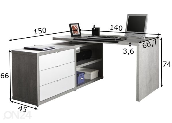 Kulmatyöpöytä Pratico mitat